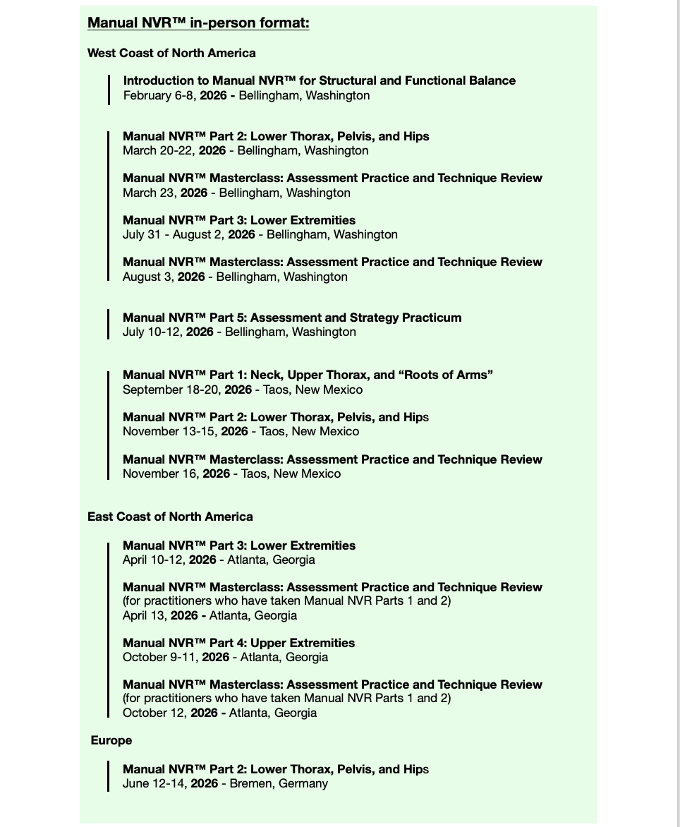 Manual NVR™ and Movement-Based NVR™ -- Continuing Education courses for manual therapists and movement educators.