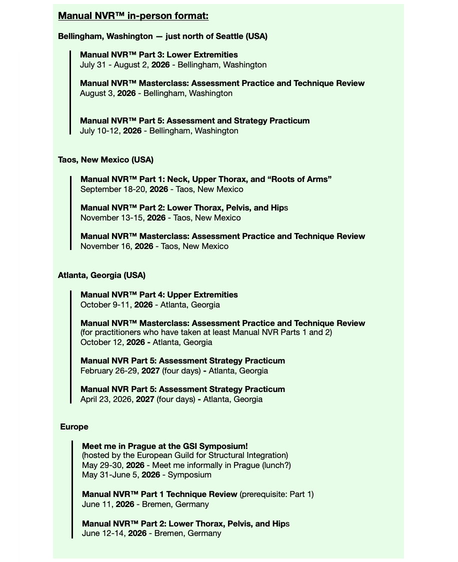 Manual NVR™ and Movement-Based NVR™ -- Continuing Education courses for manual therapists and movement educators.
